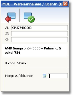 3. Scannen Sie im nachfolgenden Dialog die Artikelnummer mit dem MDE-Gerät ein.