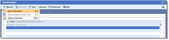 2. Drücken Sie [F3] oder klicken Sie im Menü auf "Allgemein > Marketplace anlegen".