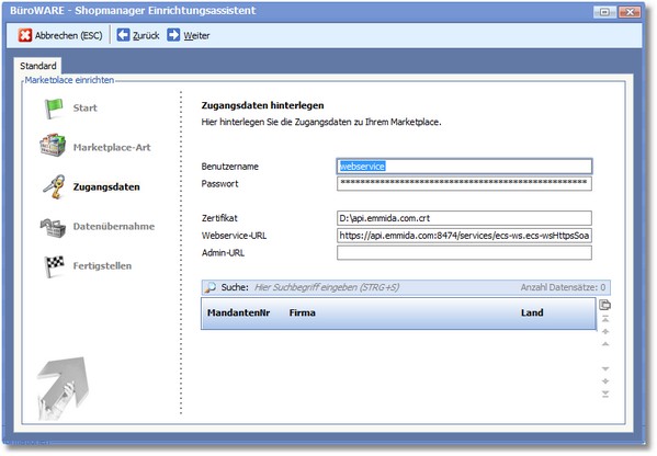 5. Hinterlegen Sie hier die Zugangsdaten zu Ihrem Shop und klicken Sie auf <Weiter>.