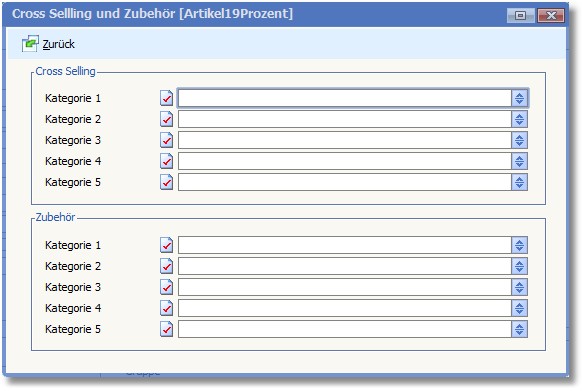 Dort kann im Optionsfenster "Cross-Selling und Zubehör" die Kategorie ausgewählt werden.