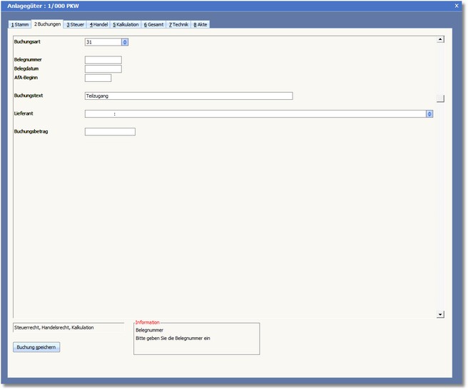 << Hier KLicken um eine Inhaltsübersicht anzuzeigen >> Navigation: Anlagenbuchhaltung > Buchungen > Das Buchen von Anlagen > Buchen von Teilzugängen |