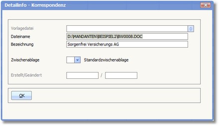 Angezeigt werden jeweils das Erstellungs- und Änderungsdatum des Dokuments. Diese Daten beziehen sich bei eingebundenen Dokumenten auf den Zeitpunkt der Einbindung.