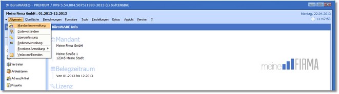 << Hier KLicken um eine Inhaltsübersicht anzuzeigen >> Navigation: Allgemein > Mandantenverwaltung |
