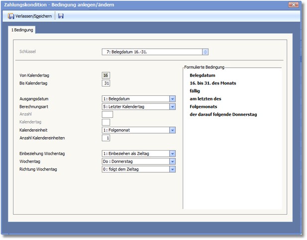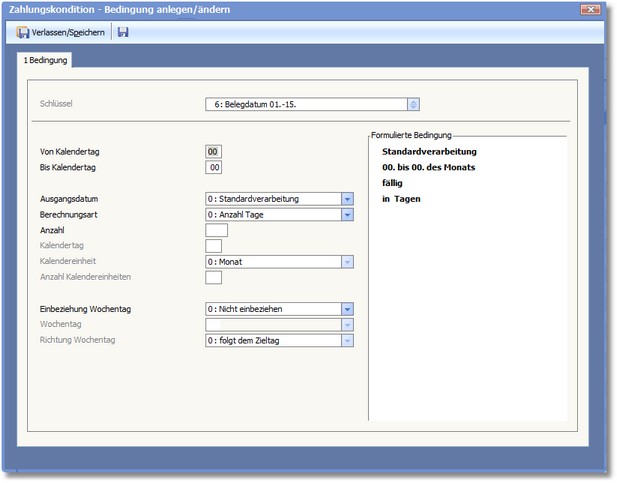 << Hier KLicken um eine Inhaltsübersicht anzuzeigen >> Navigation: Warenwirtschaft > Stammdaten > Basisdaten > Zahlungskonditionen > Über Bedingungen ermitteln |
