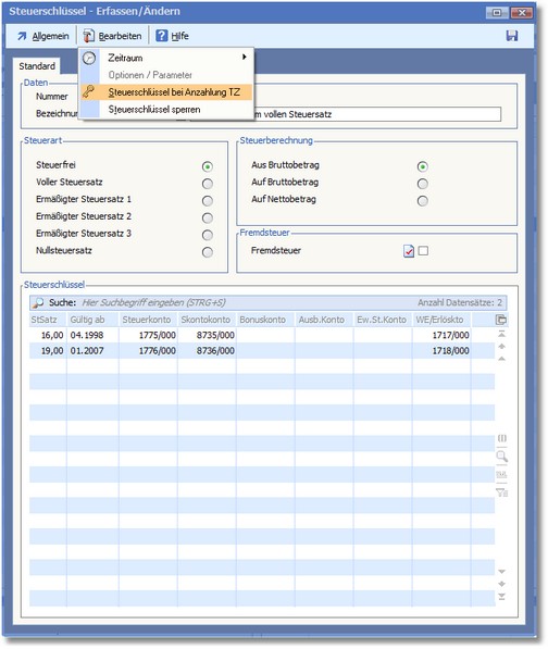 << Hier KLicken um eine Inhaltsübersicht anzuzeigen >> Navigation: Finanzbuchhaltung > Laufende Vorgänge > Stapelbuchungen > Die Karteikarte "Buchungen" > Buchungserfassung > Die Karteikarte "Erfassen/Ändern" > Buchungen bearbeiten - Menü > Vorsteuerabgrenzung Folgejahr |