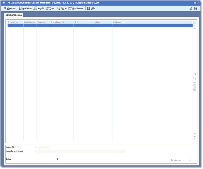Diese Übersicht zeigt alle journalisierten (d.h. im Journal dokumentierten) Buchungen des aktuellen Stapels.