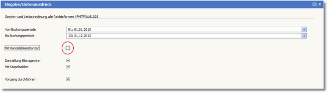 Drucken Sie nun die Handelsbilanz, indem Sie die Option "Mit Handelsbilanzkonten" aktivieren.