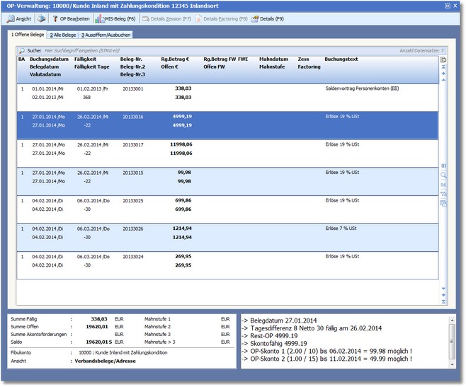 Mit [F9] können Sie sich Details des in der Auswahltabelle markierten offenen Postens anzeigen lassen.