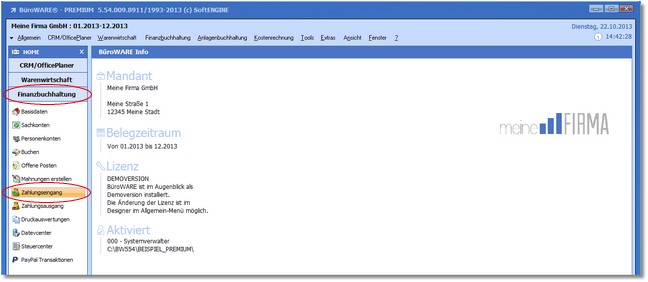 | 1. | Klicken Sie im Bereich "Finanzbuchhaltung" des Arbeitsplatzes mit der Maus auf die Verknüpfung "Zahlungseingang". |