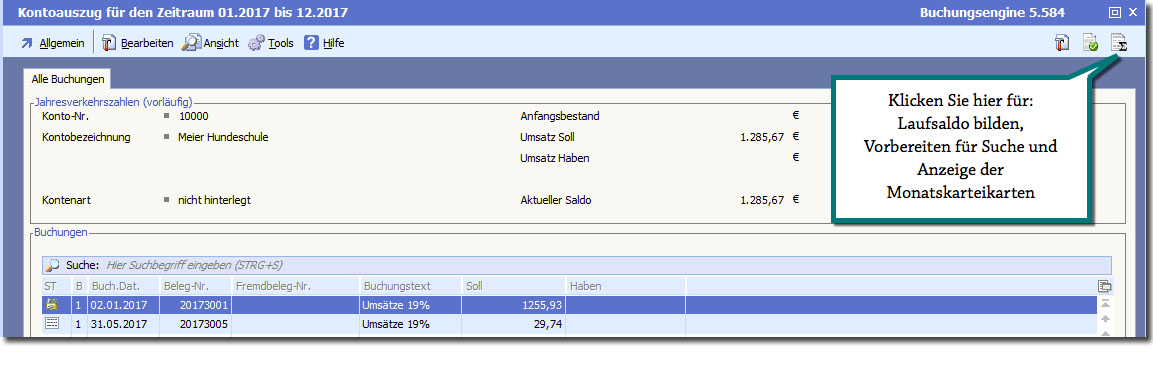 Klicken Sie auf das Quiktool "Laufsaldo ermitteln, damit ihnen weitere Funktionen und Informationen zur Verfügung stehen.
