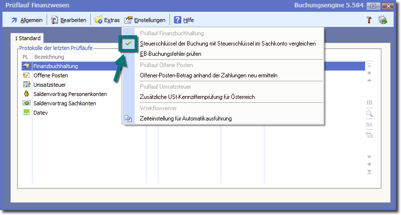 EB-Buchungen prüfen Die Eröffnungsbuchungen werden ebenfalls mit in die Prüfung einbezogen.