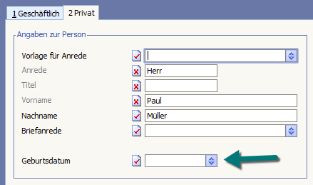 Beispiel – Feld Geburtstag Ansprechpartner: