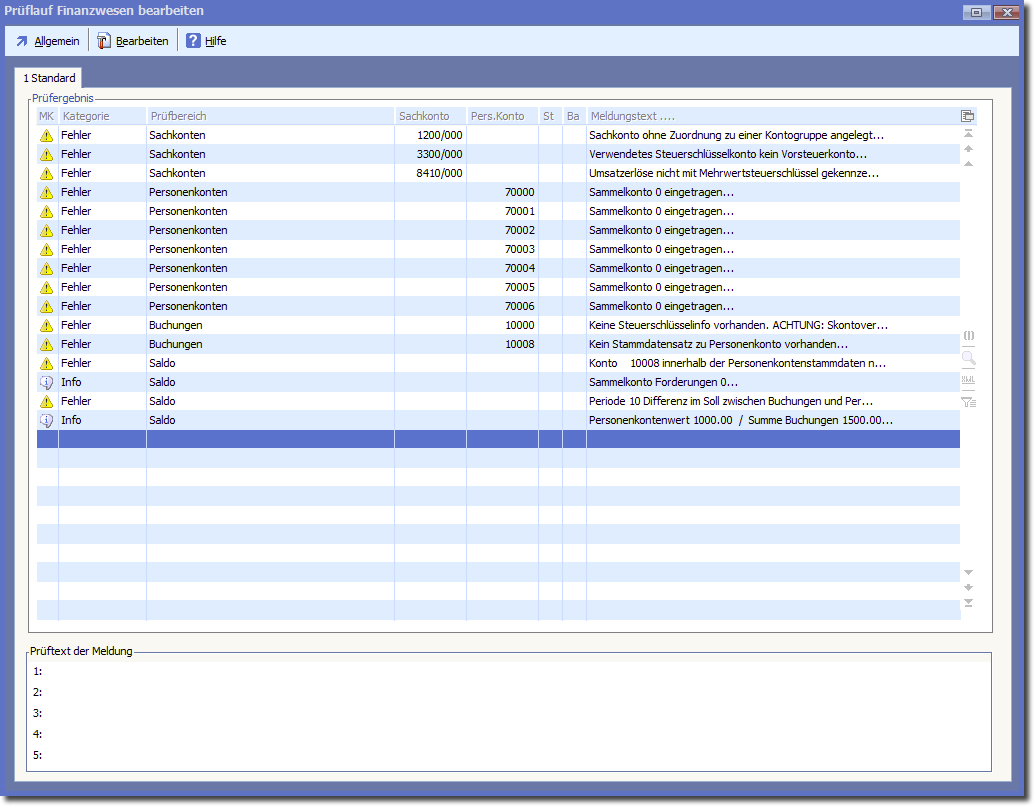 Danach Reorganisation der Finanzbuchhaltung und erneuter Prüflauf.