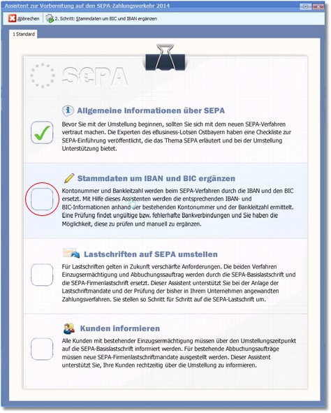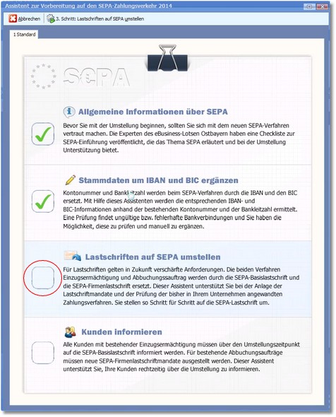 Der Assistent unterstützt Sie hier bei der Umstellung der Lastschriften auf SEPA.