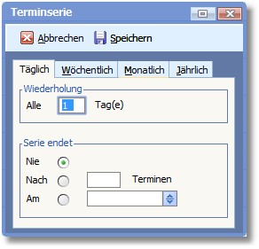 Tragen Sie in diesem Feld die Anzahl der Tage ein, nach denen der Termin wiederholt werden soll.