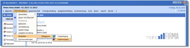 1. Klicken Sie mit der Maus im Hauptmenü auf "CRM/OfficePlaner > Bearbeiten > Belegwesen > Warenausgang".
