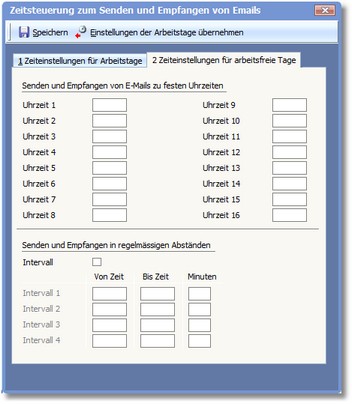 Ist dieses Kontrollkästchen aktiviert, können statt den Uhrzeiten Intervalle zum Senden und Empfangen von E-Mails eingegeben werden.