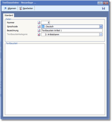 Anschließend wird der Dialog "Textbausteine - Neuanlage" geöffnet.