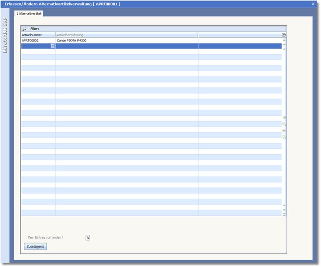 Sie haben auch die Möglichkeit, mit der Maus von der Artikelauswahltabelle zur Auswahltabelle der Alternativartikel zu wechseln, um den Alternativartikel dort zu bearbeiten.
