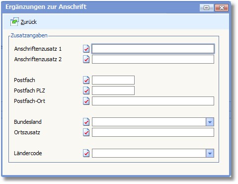 In diesem Optionsfenster werden ergänzende Einträge zur Anschrift des Vertreters vorgenommen: