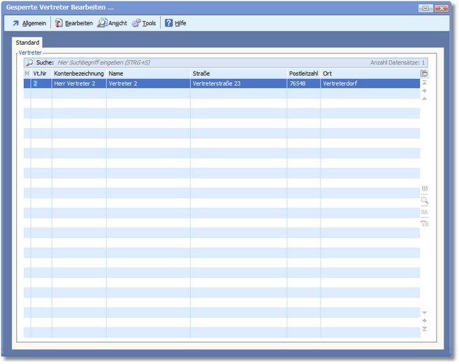 Gesperrte Vertreter sind im Vertreterstamm zwar angelegt, werden jedoch in der Vertreterauswahl nicht angezeigt.