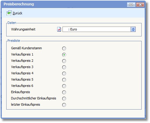<< Hier KLicken um eine Inhaltsübersicht anzuzeigen >> Navigation: Warenwirtschaft > Stammdaten > Projekte > Projekte anlegen und ändern > Die Karteikarte "Standard" > Preisberechnung |