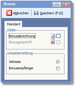 Aktivieren Sie den Status dieses Feldes, wenn über die Umsätze dieses Belegs eine Bonusgutschrift erfolgen soll.