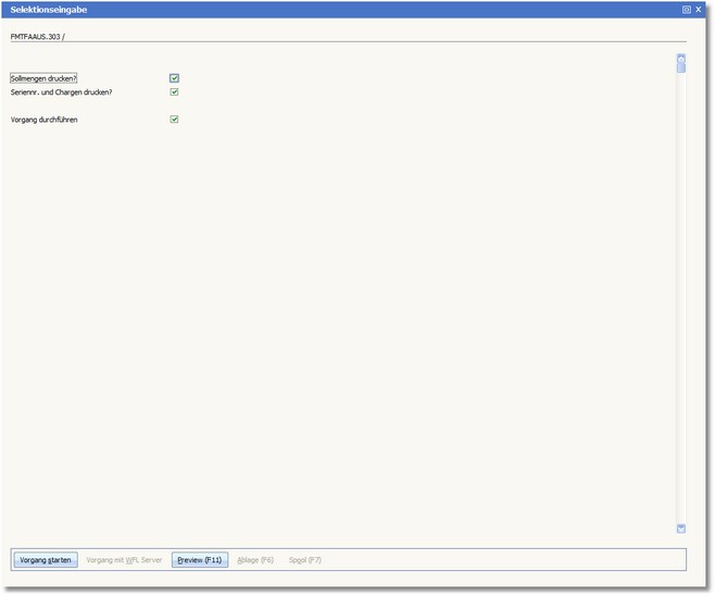 Das Programm öffnet vor dem Druck zunächst das Dialogfenster "Selektionseingabe".