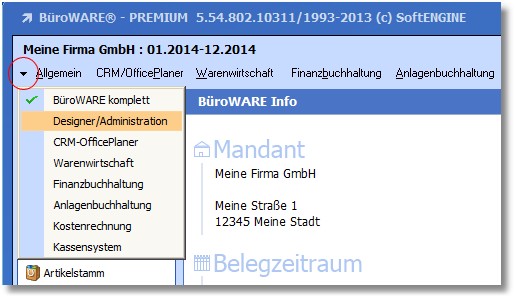 1. Rufen Sie den Designer über die Combo Box des Front Office auf.