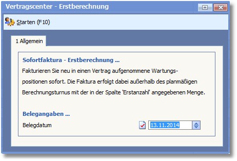 << Hier KLicken um eine Inhaltsübersicht anzuzeigen >> Navigation: Warenwirtschaft > Vertragscenter > Verträge neu anlegen > Erstfaktura |