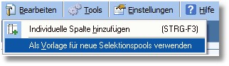 << Hier KLicken um eine Inhaltsübersicht anzuzeigen >> Navigation: Warenwirtschaft > Selektionspools > Erweiterte Einstellungen > Als Vorlage verwenden |