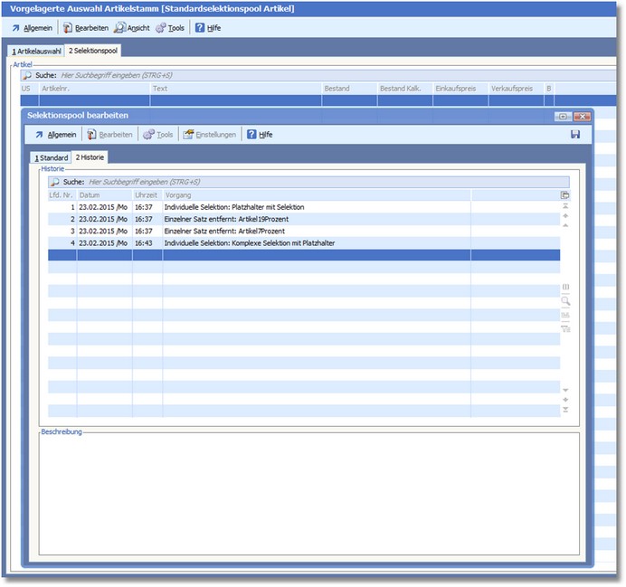 << Hier KLicken um eine Inhaltsübersicht anzuzeigen >> Navigation: Warenwirtschaft > Selektionspools > Neuerungen Selektionspool > Historie der Daten |