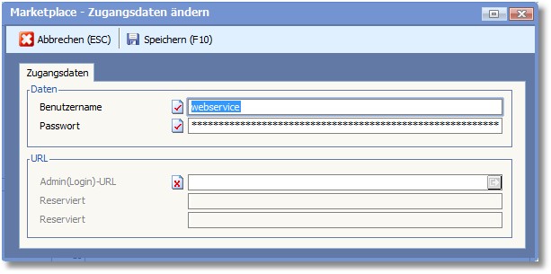 In dieser Optionsmaske werden die für den Marketplace hinterlegten Zugangsdaten angezeigt und können in den jeweiligen Feldern direkt bearbeitet werden.