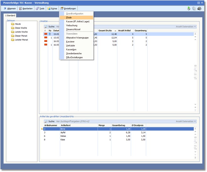 1. Wählen Sie den Menüeintrag "Warenwitschaft > Extras > TEC - Kassenschnittstelle".