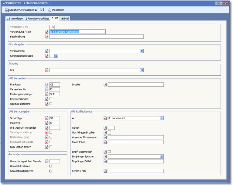 << Hier KLicken um eine Inhaltsübersicht anzuzeigen >> Navigation: Warenwirtschaft > Lagerverwaltung > Lager-/Logistikcenter > Logistiker "UPS" (Worldship) > Beispiel 2 - Standard mit Nachnahme |